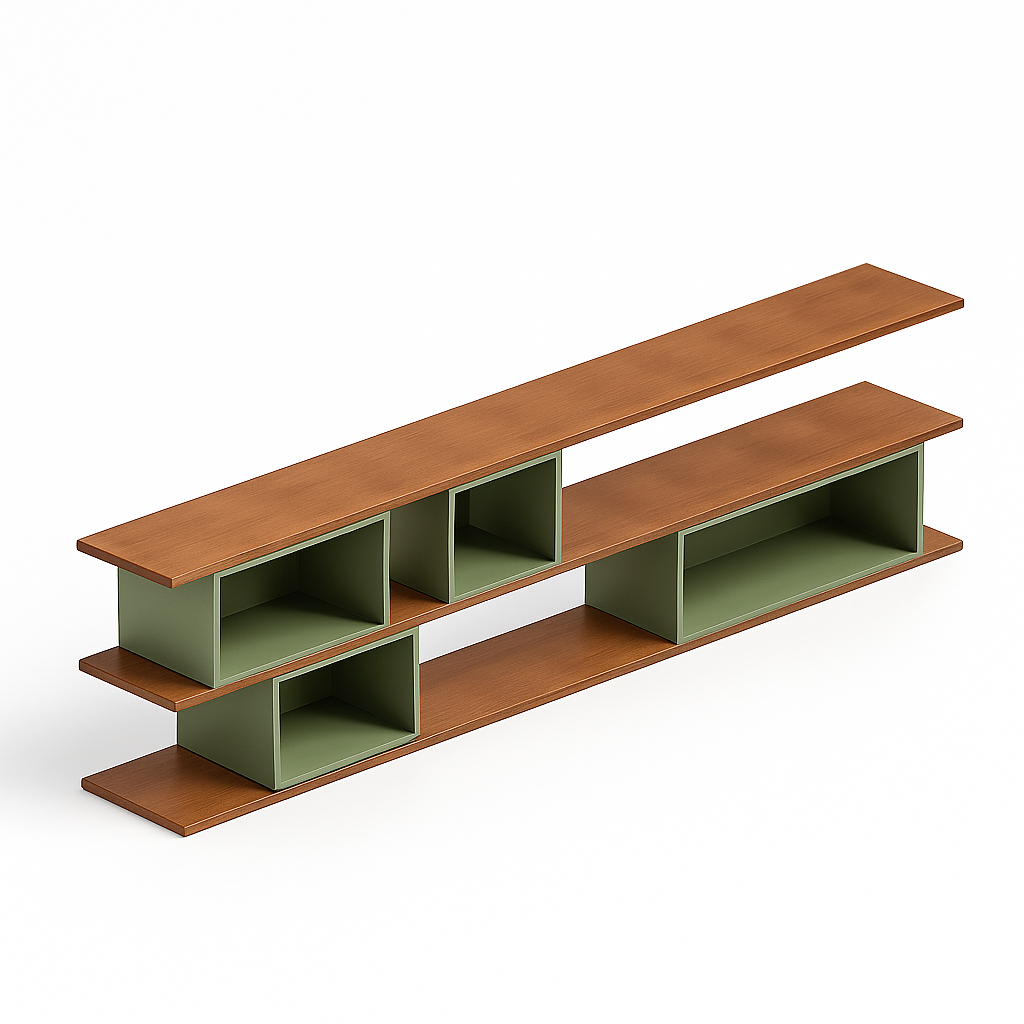 O armário de estudo com nicho verde é um mobiliário projetado para organizar livros, objetos e materiais de uso frequente em ambientes de estudo, home offices e dormitórios. O nicho na cor verde cria um ponto de destaque visual que adiciona personalidade e leveza ao conjunto, permitindo ao projetista compor ambientes mais dinâmicos, acolhedores e coerentes com propostas contemporâneas ou lúdicas.