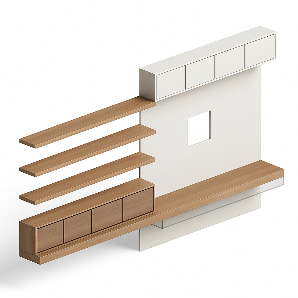 Como objeto BIM, o modelo permite inserção precisa na maquete digital, auxiliando o projetista na verificação de interferências, alinhamentos e compatibilização com painéis, pontos elétricos e demais elementos de interiores. Integrado a plataformas como Revit, o armário contribui para decisões mais assertivas e uma leitura espacial clara, mantendo o uso de termos relacionados ao BIM de forma natural e equilibrada.