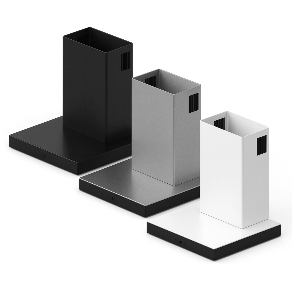 A coifa de base quadrada é indicada para cozinhas que necessitam de exaustão eficiente e integração visual com a área de cocção. Seu formato geométrico favorece composições limpas e alinhadas, combinando bem com fogões de diferentes dimensões e oferecendo boa captação de vapores e odores durante o preparo dos alimentos. Sua instalação pode ser realizada em parede ou em ilha, conforme especificações do fabricante.