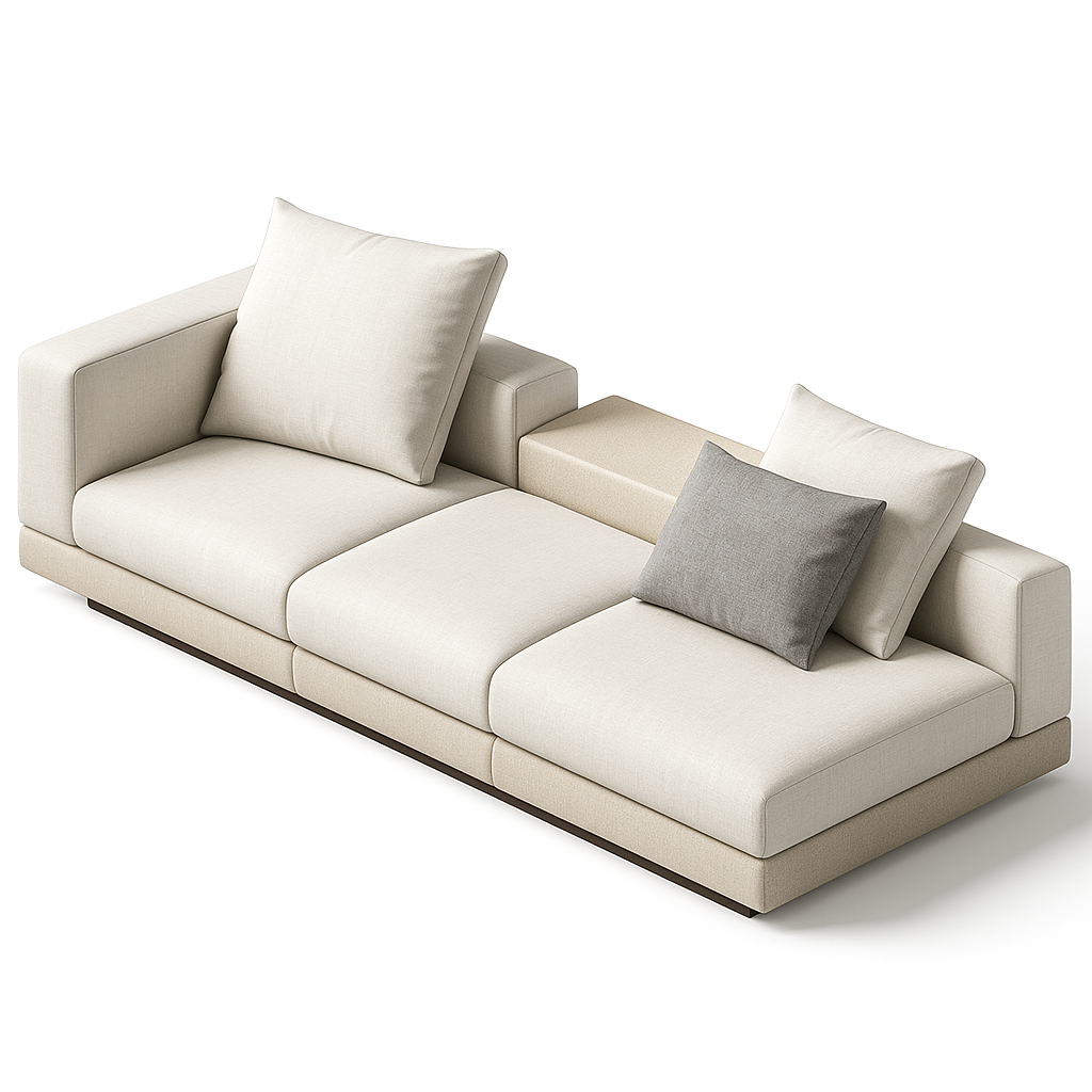 Este módulo de sofá aberto com braço e aba da coleção Connery é projetado para composições amplas, combinando conforto e presença visual em ambientes de estar contemporâneos. Suas dimensões generosas favorecem layouts lineares ou orgânicos, permitindo que o mobiliário funcione como peça estruturadora do espaço, conectando áreas de convivência com fluidez e ergonomia.