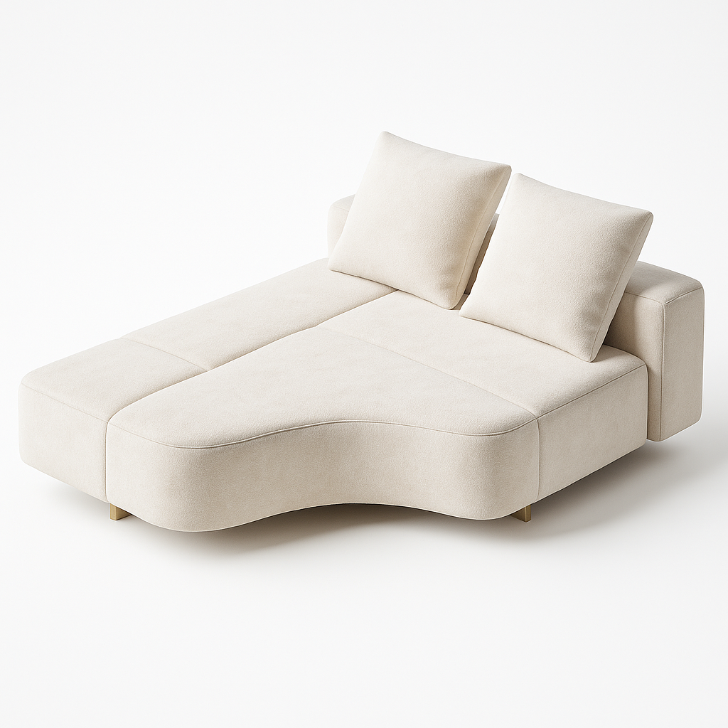 Este sofá Onda da coleção Yves Wave apresenta um desenho orgânico e contínuo, caracterizado por curvas suaves que proporcionam conforto e conferem identidade visual ao ambiente. Suas proporções mais alongadas permitem uso como peça central em salas contemporâneas, criando pontos de destaque que equilibram estética e ergonomia tanto em projetos residenciais quanto corporativos.